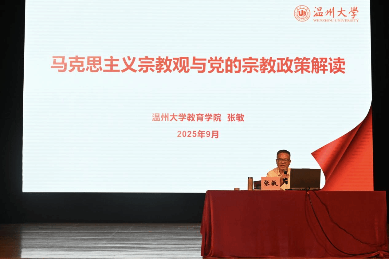 9月13日晚上,williamhill党委书记张敏在育英大礼堂为2025级新生主讲《马克思主义宗教观与党的宗教政策解读》形势政策课,引导新生树立马克思主义宗教观,做有理想信念的时代新人。学院党委副书记兼纪委书记章志图主持。