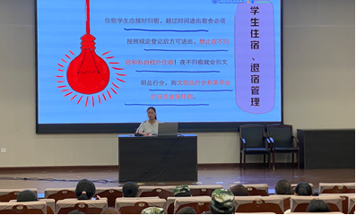为进一步加强寝室长队伍建设,充分发挥寝室长在维护校园安全稳定工作中的作用,10月14日下午,我院在北校信息楼报告厅举办2025级新生寝室长专题培训会,学院党委副书记兼纪委书记章志图,学工办辅导员薛彬鹏、罗桂芳,以及2025级新生全体寝室长、新生班级心理委员参加培训大会。