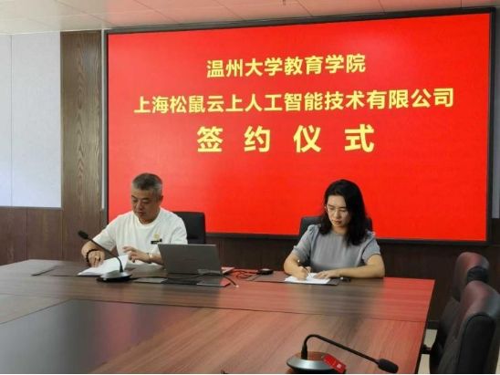 为深入拓展毕业生就业渠道,推动人才链与创新链精准对接,2025年9月25日,William威廉williamhill与上海松鼠云上人工智能技术有限公司举行合作签约仪式,共建“人工智能赋能学习创新实验室”。此举是我院深化“访企拓岗”专项行动、以校企合作促高质量就业的重要举措。上海松鼠云上人工智能技术有限公司智委会主席徐军先生一行,我院副院长柳晨晨、教育技术学科负责人杨刚教授等出席仪式。