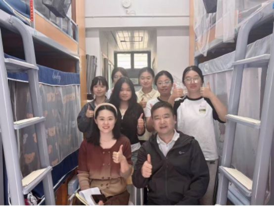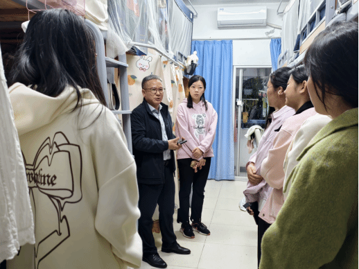 10月27日,学院党委副书记、纪委书记章志图走进学生公寓C1-520、521、522等寝室,通过“拉家常”式交流深入了解24应心专业学生的校园生活、学业进展及心理状态。针对应用心理学专业学生的发展,章志图结合行业趋势与专业特性,重点开展考研动员与就业形势分析,引导学生结合个人兴趣与职业目标提前规划学业路径,并鼓励积极参与志愿活动、学科竞赛等实践,在实践中提升综合素养。随行辅导员徐倩倩同步补充学业生活支持渠道,现场氛围温暖融洽,学生们纷纷表示“对专业学习和未来规划更有信心了”。
