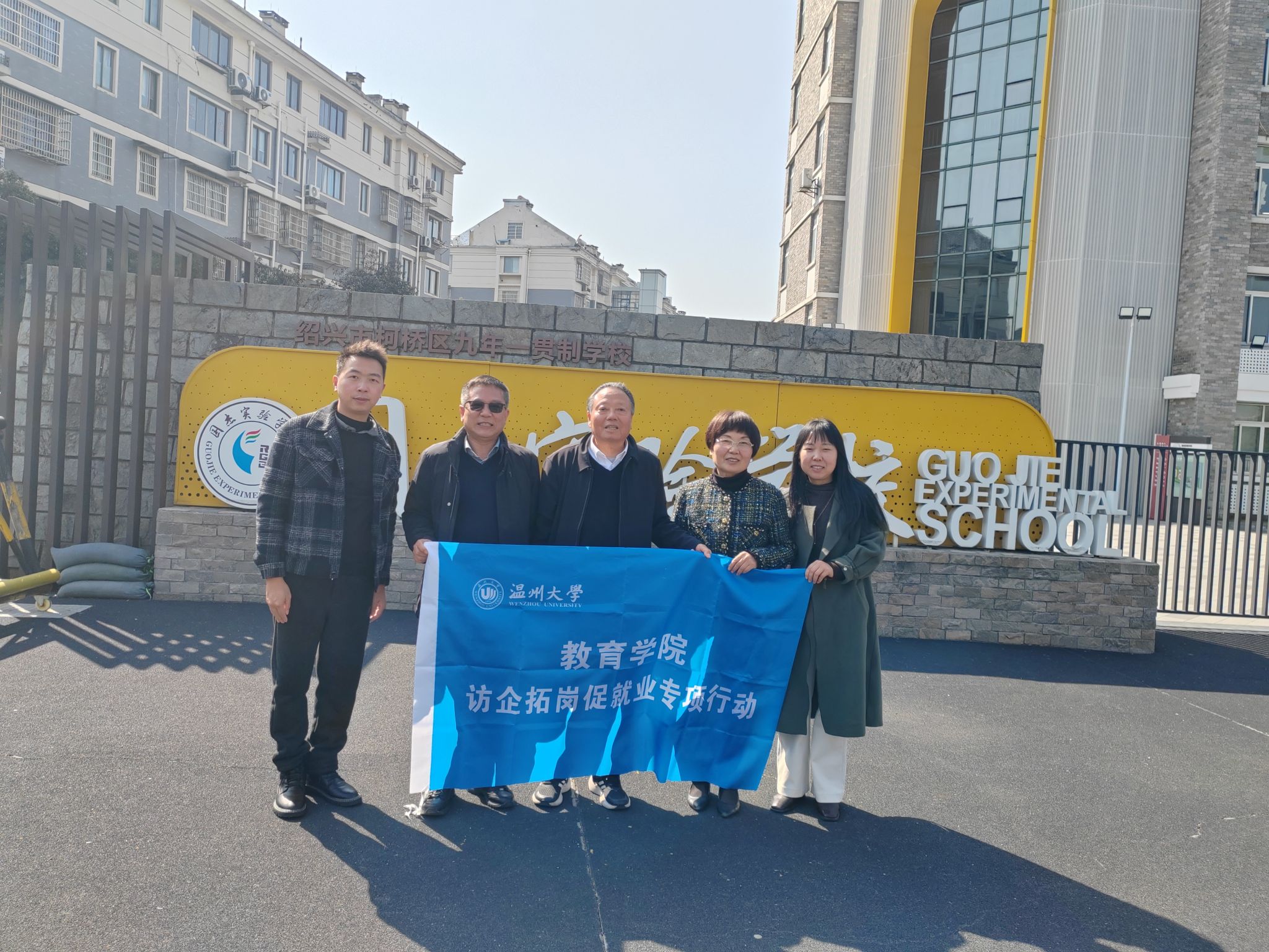 为深入贯彻落实教育部“访企拓岗促就业”专项行动,扎实开展学院立德树人机制综合改革试点工作,3月10日,学院党委书记张敏、副书记章园园等一行前往绍兴市柯桥区国杰实验学校开展校友走访及访企拓岗活动。