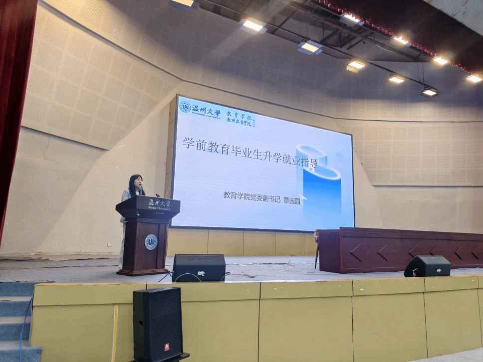 随后,就业辅导员施星鸿就毕业阶段具体事务进行了详细说明,重点介绍了教师资格证认定、毕业档案寄送、就业信息填报等事项,明确办理流程和时间节点,并鼓励毕业生密切关注招聘动态,积极备考教师招聘考试,主动把握就业机会。