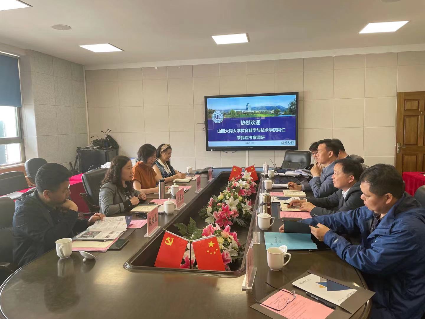 2021年4月22日上午,山西大同大学教育科学与技术学院院长赵慧勤一行4人来我院考察交流。学院党委书记何毅,副院长叶新东、王志强热情接待了来访客人,学院心理系、教技系、实验中心等相关负责人参加座谈交流。
