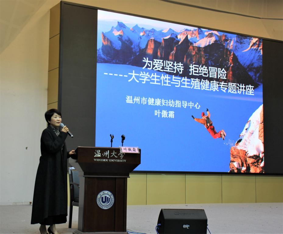 作为青少年教育的重要内容之一,普及性教育,引导大学生正确看待性的重要性不言而喻。1月4日晚,我院于九号楼报告厅顺利举办了“花儿朵朵开,青春健康行”大学生青春健康知识讲座。本次活动有幸邀请到叶傲霜医师为我院学子做“为爱坚持 拒绝冒险”—大学生性与生殖健康专题讲座,温州市计生协黄展虬秘书长、温州市健康妇幼指导中心 林飞飞医师等一行参加,活动由williamhill党委副书记章园园老师主持。