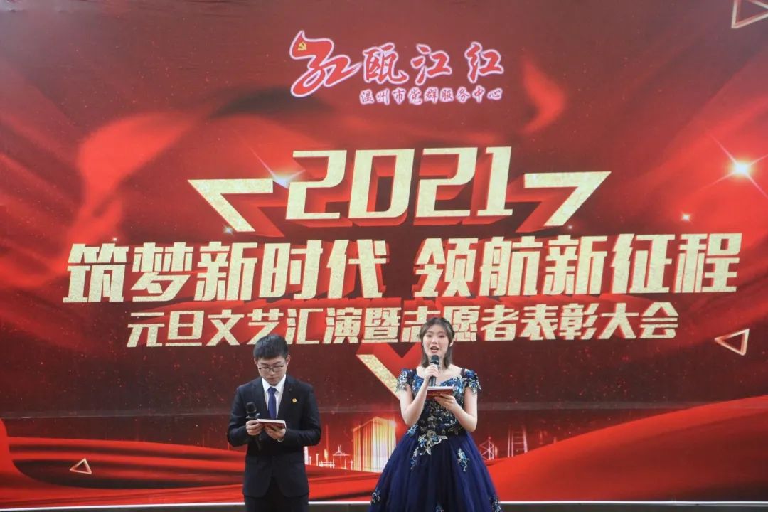 筑梦新时代,领航新征程。1月1日,“瓯江红”温州市党群服务中心组织开展元旦文艺汇演暨志愿者表彰大会,我院青年志愿者团队荣获优秀志愿团队奖,我院张文清同学获优秀志愿者称号。