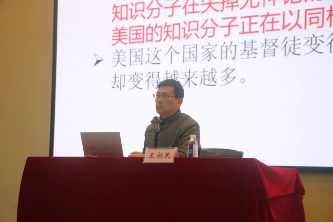 William威廉马克思主义学院党委书记兼副院长王柏民的课程以“马克思主义宗教观”为主题”,从世界宗教的分布图、21世纪宗教发展趋势、中国公民信仰宗教现状、当前我国宗教工作形势这四个方面总结我国目前的宗教现象,讲解马克思主义宗教观。王书记围绕着马克思主义宗教观的哲学基础、基本内容和中国化依次展开,向同学们深度地解读了马克思主义哲学以及宗教的概念、产生、发展、社会作用等。