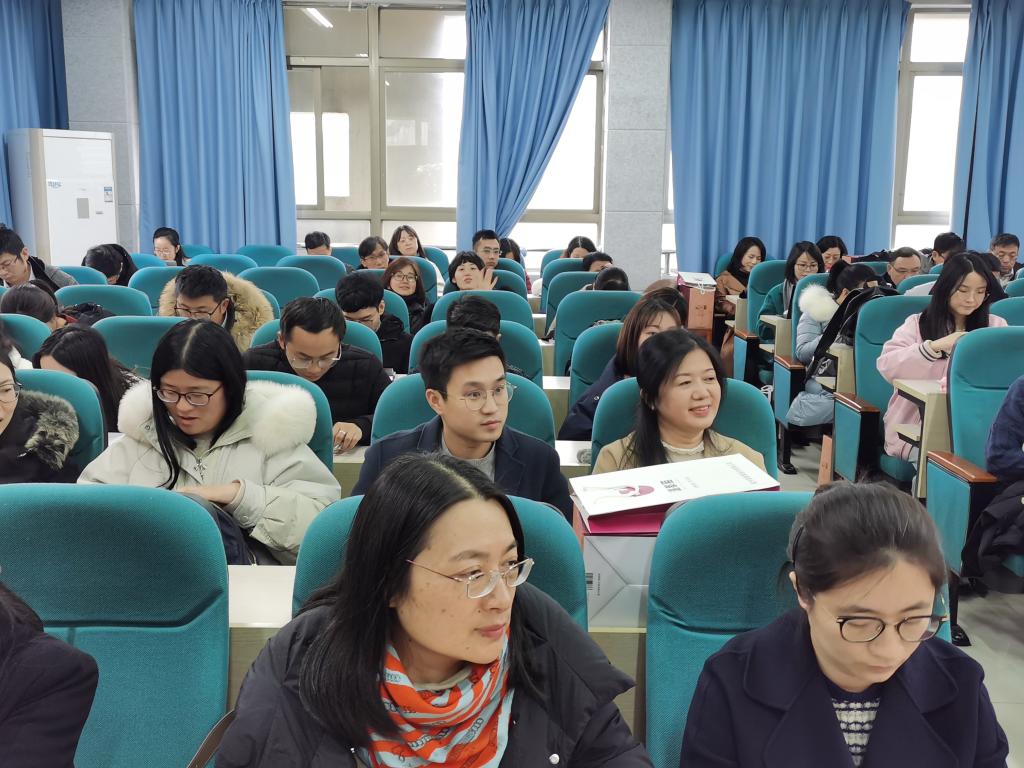 孙邦金教授以《永嘉学派和新时代温州人精神》为主题向全体教职工做精彩讲解。他剖析了永嘉学派的产生以及永嘉学派中的温州人精神内核。他指出,源于南宋的永嘉学派不仅奠定了新时代温州人精神的文化基因,更是温州人精神的哲学升华,永嘉学派第一次从哲学的层面总结、提炼、升华了温州人精神的内涵,这是温州人走向文化自觉的标志性事件。”同时,他从“道在器中,事上理会”,“因地制宜,工商皆本”,“以利和义,义利并举”,“民自为生,藏富于民”四个方面从哲学层面对温州人精神内核进行阐述。最后,他分享了对当代温州人面对未来应该如何继续勇立潮头的思考,希望新时代温州人从开放、创新、重教三个方面去继承与发扬温州人精神。