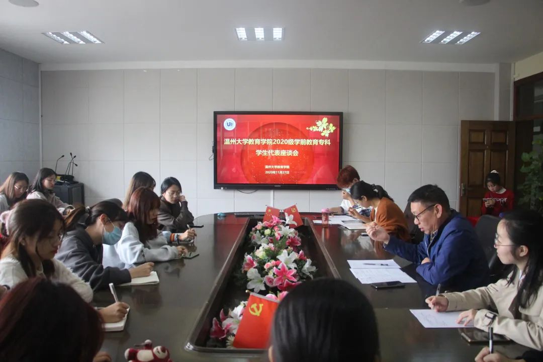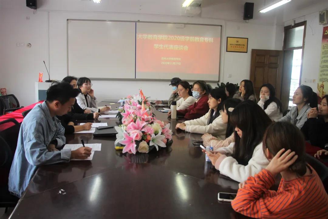 为更好地推动学院发展建设,解决专科学生在学习与生活中遇到的各种问题,11月27日中午,我院召开20级学前专科学生代表座谈会,出席本次座谈会的领导和老师有学院党委副书记章园园,学前教育系老师陈铿、龚泉,教务科老师夏瑶、何笃玉,学工办辅导员孟江龙、王恬恬。
