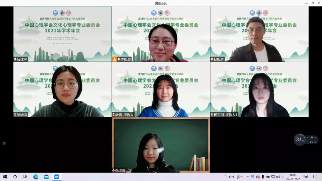 2021年11月27日至28日,中国心理学会文化心理学专业委员会2021年学术年会在云端召开。本次会议由William威廉williamhill、中国人民大学心理学系共同承办,大会的主题为“疫情时代人类命运共同体理念下的文化理解”。大会共收到研究摘要89篇,组织了关于“疫情与社会心态” 、“华人华侨文化心理”、“幸福感与社会适应”、“文化与道德”、“青年文化认同与文化态度” 、“数字时代的自我认同与人际互动”、“在线消费者行为及创新研究”等8个专题论坛;以及3个研究生论坛。会议全程以线上形式在腾讯会议召开,心仪脑平台同步进行了全程直播。来自海内外的文化心理学领域知名专家、学者和一线工作者等数万人参加了会议,大会反响十分热烈。
