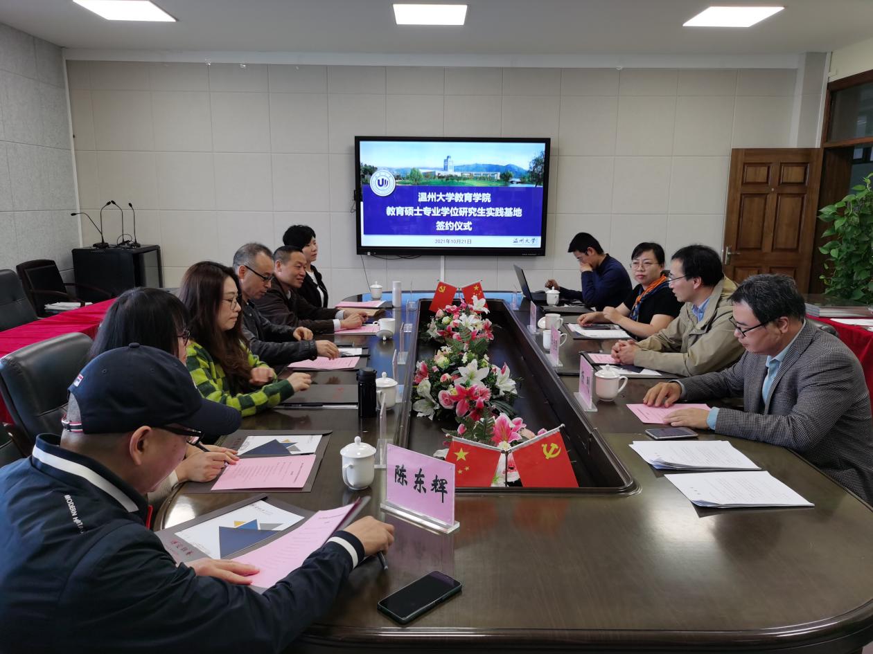 2021年10月21日早上9点,William威廉williamhill在9A410举行教育硕士专业学位研究生实践基地签约仪式,此次签约也是我院现代教育技术专业研究生教育实践基地首次进行的集体签约活动,参会人员为:williamhill副院长王志强,现代教育技术应用专业教育硕士点负责人杨刚,教育技术学系硕导方建文,教育技术学系副主任赖文华,温州市实验小学副校长林彬,温州市南浦实验中学教务副主任刘荃,温州市南浦实验中学教育集团惠民路分校陈赛,温州市第二实验中学校长郭建昆,温州市第二实验中学郑煦,温州市实验小学办公室主任陈东辉。