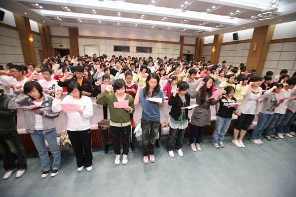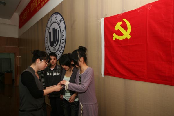 启动仪式上,全体同学面向党旗庄严承诺,将尽己所能,不计报酬,帮助他人,服务社会,践行科学发展观,传播先进文化,为建设团结互助、平等友爱、共同前进的美好社会贡献力量。嵇小怡书记代表学院领导为爱心家教成员代表颁发工作证,她郑重宣布“大手牵小手·知识献爱心” 百户家庭爱心家教活动正式启动。