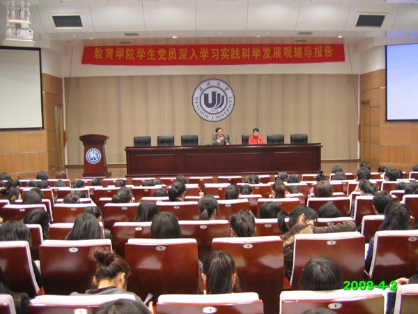辅导报告会上,潘处长对williamhill学生党员开展学习实践科学发展观活动提出了四点建议和要求:一是要完善自身注重党员先锋模范作用;二是要集中学习和自学相结合;三要重实践求实效;四要出亮点,对外加强宣传走出温大。