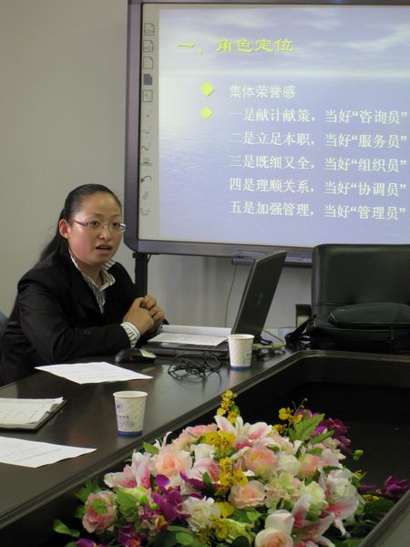 陈慧老师以行政教辅人员的工作实际为出发点,从角色定位、团队精神、工作态度、工作效率、工作方式和工作创新这六个方面展开论述。她分析说,行政教辅工作作为联系各个部门的重要关节,良好的心理素质、积极的合作精神和高效的工作服务是对行政人员的责任要求。陈老师最后强调,工作中要干一行、爱一行、专一行,要善于从工作反馈中找到创新的服务方式,灵活地调节各种积极因素,主动发掘团队的巨大潜力。报告结束后,陈老师与我院的行政管理人员进行互动交流,耐心的答疑解惑,并将原理与自己实际工作的案例充分结合,语言形象、幽默,使我院的教辅人员收获颇丰。