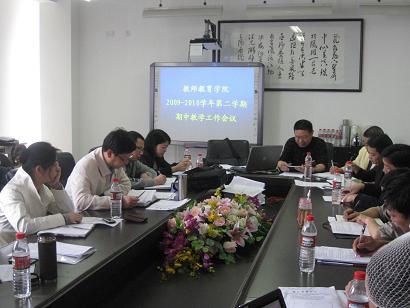 4月30日下午,我院在北校区教育楼311会议室召开了2009—2010学年第二学期期中教学工作会议。学院领导、各系(中心)主任、书记、教学委员会、实验教学委员会成员以及教学科有关人员参加了会议,会议由郑信军副院长主持。