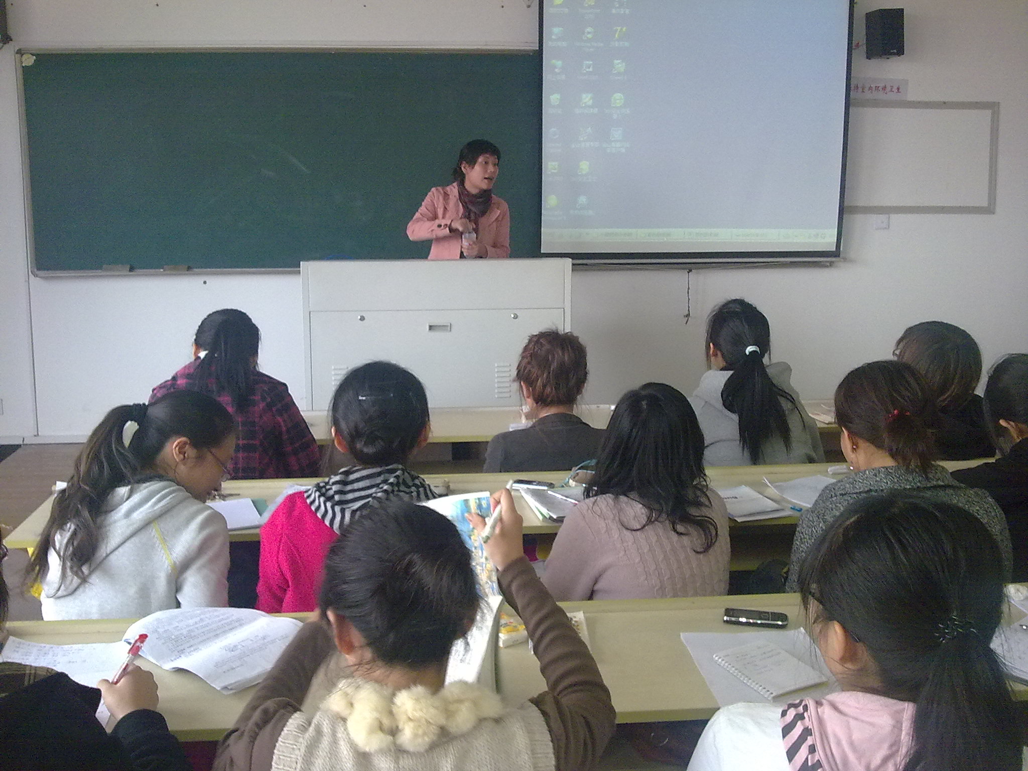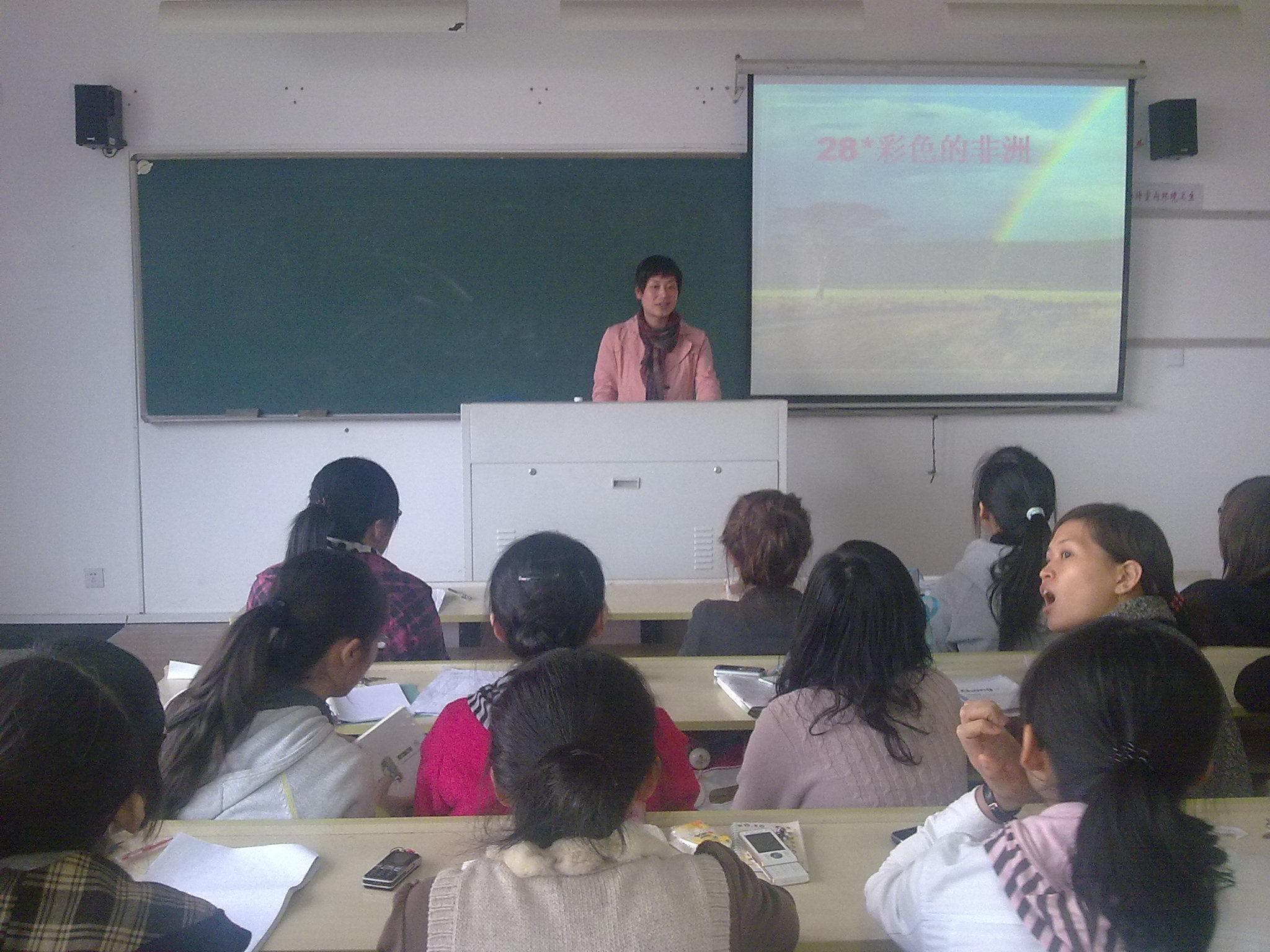 缪老师从我院同学即将去实习的实际出发,为我们同学讲了低年段的小学语文教学和高年段的小学语文教学。她以二年级的《小柳树和小枣树》为例子,剖析了低年级课内课文的教学,又以五年级《彩色的非洲》为例子,阐述了高年级略读课文的教学。