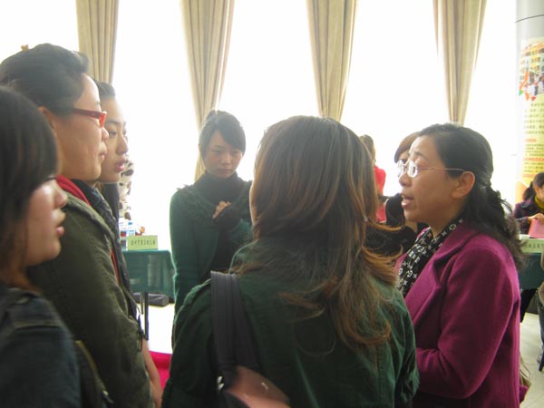 在招聘会现场,浪漫轻音乐缓缓响起,阳光透过薄薄的窗纱投射在大厅中,气氛显得温馨而轻松。在精彩的毕业生才艺演之后,招聘双方开始愉快洽谈,毕业生们均能以自信而乐观心态与用人单位进行交流。各毕业班的班主任到现场指导毕业生就业,为毕业生答疑解惑。随着幼教岗位工作待遇的提高和发展空间的扩大,越来越多非学前教育专业的毕业生也逐渐把就业目光转向幼教行业,一些音乐与体育专业的学生也希望能加入到幼教行业。