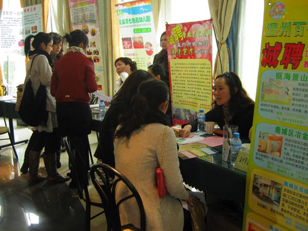 招聘会上,鹿城区十所公办幼儿园和瑞安市安阳中心幼儿园、乐清柳市三幼等省一级民办幼儿园近30家单位前来招募幼教人才,共为毕业生提供120余个就业岗位,现场达成就业意向70余人。