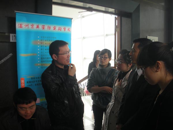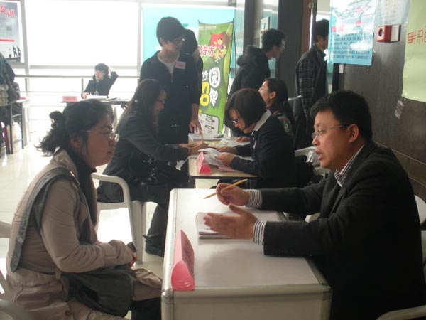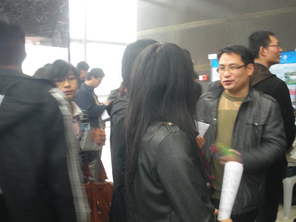在招聘会现场,我院胡来林院长、嵇小怡副书记、各毕业班主任和辅导员早早来到会场,了解招聘信息,积极向用人单位推荐毕业生。毕业生们带着精心制作的简历,仔细寻找适合的岗位,踊跃向用人单位介绍、展示自己。在会场外,06小教本科班主任刘海霞老师、08小教专科班主任周美琼老师在耐心地辅导学生如何投递简历,不断给他们加油鼓励;会场中,08小教英语班主任胡孙贵老师积极地向用人单位推荐班级学生, 用人单位也比较重视老师的看法,很快就与学生确定了初步意向。嵇小怡副书记仔细阅读每个民办教育学校和培训机构的招聘启事,并通过交谈了解更多用人信息,向用人单位推荐我院毕业生,及时将信息通知学生。在就业形势日趋严峻的当前,为用人单位和毕业生搭建信息交流桥梁显得更为重要。我院教师协助毕业生寻找合适岗位的努力也凸显成效。