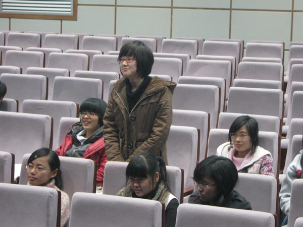 讲座共分三个环节。就大家最关心的问题,卜莹总监首先为大家介绍了温州鹏润国美电器的用人之道,她从企业的人才理念、人才培养、企业岗位、招聘流程等方面介绍该企业的人才选拔与培养情况。第二环节,卜总监以自己长期从事企业人力资源的工作经验出发,介绍了企业面试的基本内容与注意事项,她就自我推销意识与商务礼仪知识作了重点阐述。第三环节为双方互动交流,我院师范生就自己关心的问题,例如在企业的发展前景、企业的考核要求等,向卜总监进行了咨询与交流。