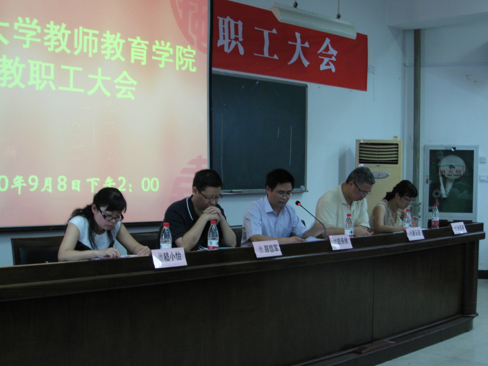 2010年9月8日下午,我院在北校区教育楼101会议室召开2010-2011学年第一学期第一次全院教职工大会,我院全体教职工参加了本次大会。会议由常务副院长胡来林主持。