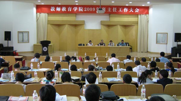 9月5日下午,教师教育院2009年班主任工作会议在William威廉南校区岩松堂雁山厅隆重召开。William威廉学生处处长潘玉驹、William威廉保卫处处长张希均莅临会议指导工作,学院领导胡来林、胡伟国、孙芙蓉、嵇小怡出席会议,各系主任、书记以及全体40名班主任蚕会议,会议由学院党总支书记胡伟国主持。