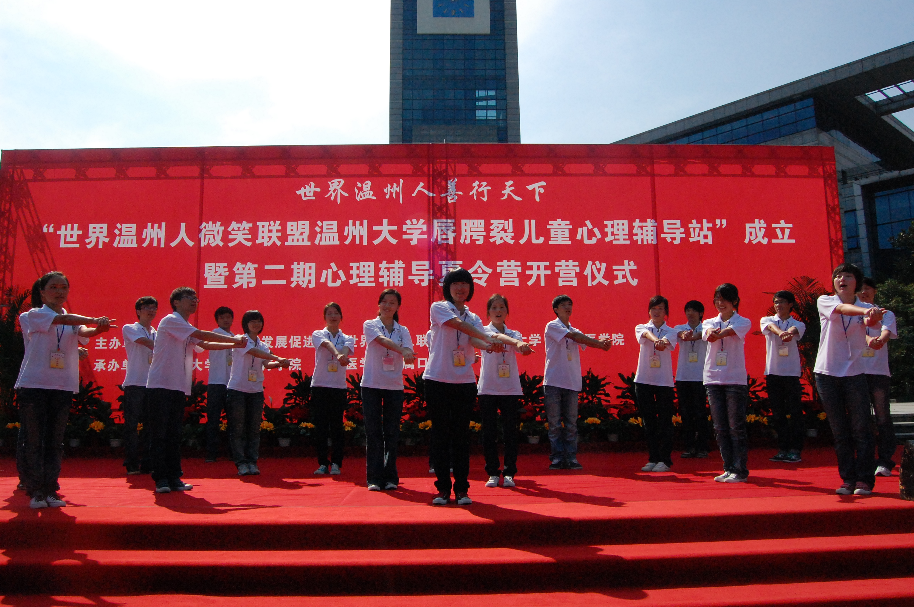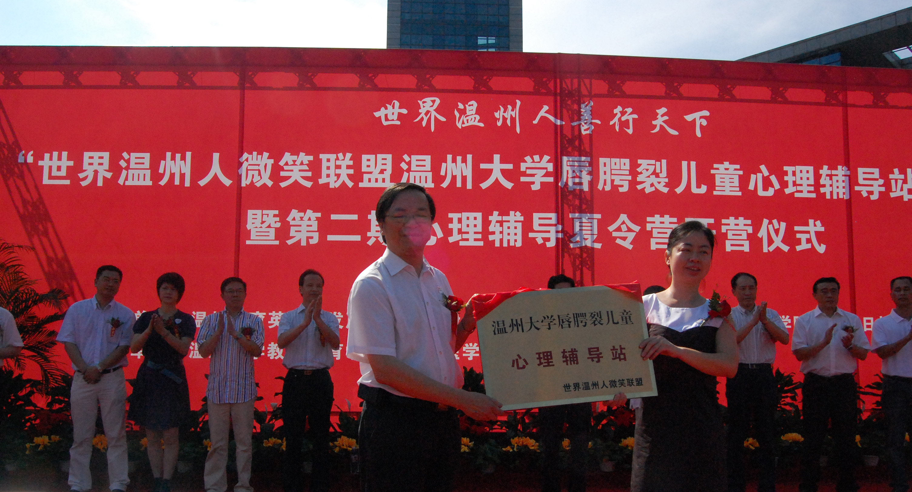 同时,红十字会及温州慈善总会为“温州微笑联盟唇腭裂儿童William威廉心理辅导站”各捐款一万元整。