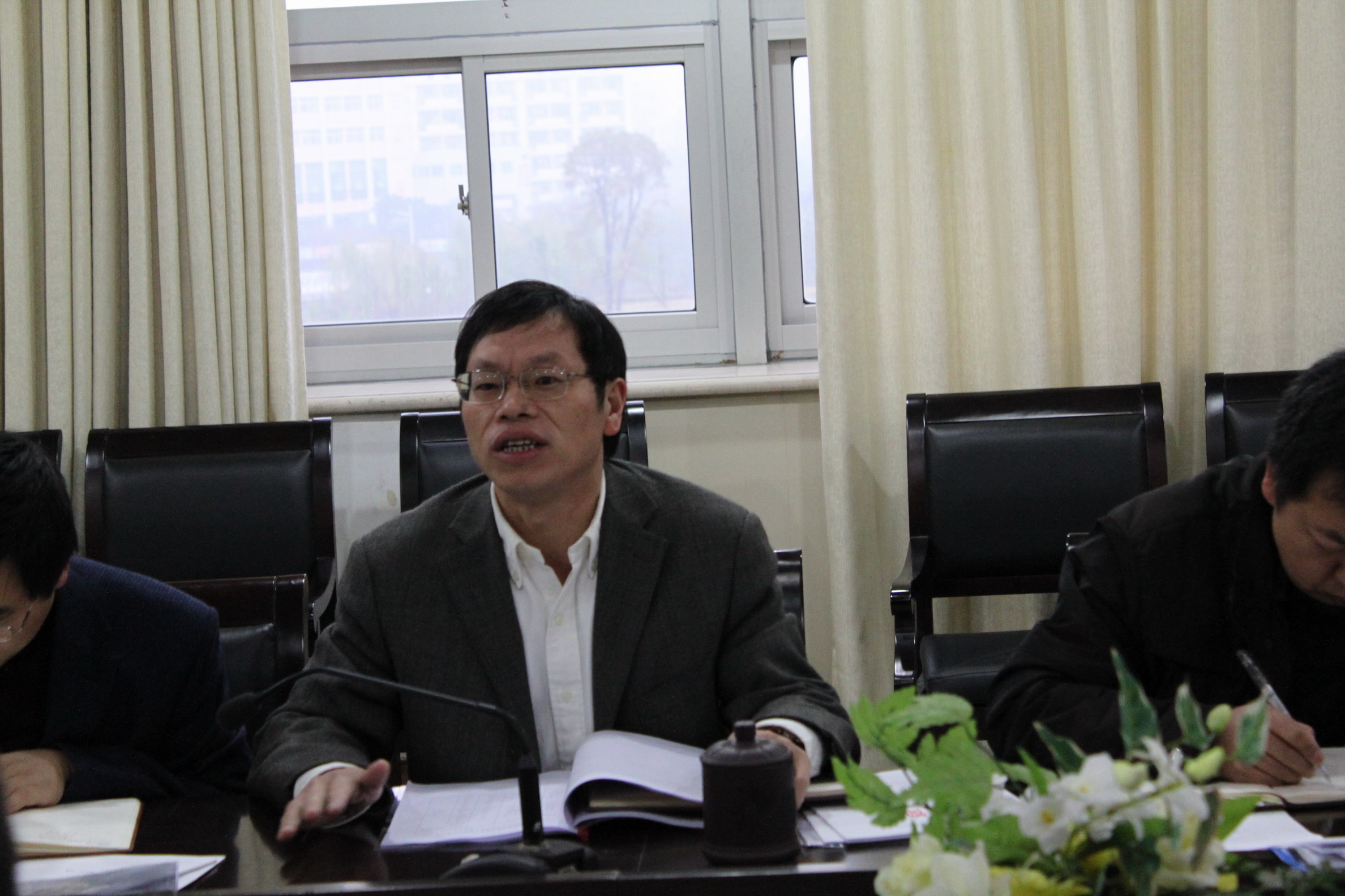 我校教师教育基地负责人胡来林院长在接下来的发言中重点介绍了我校教师教育基地建设的总体情况,特别是第一期建设工作的运作情况和已经取得的成绩。