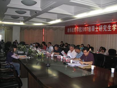 5月29日下午,我院在北校行政楼第五、六会议室,迎来首届硕士研究生学位论文答辩会。答辩主席分别由浙江大学的曹立人教授、盛群力教授担任,答辩委员会成员是浙江师范大学的章苏静教授、温州医学院的何金彩教授、丽水学院的周湘浙教授,以及我院的胡来林教授、郑信军教授、张宝臣教授、潘玉进副教授、郭文斌副教授、胡瑜副教授、黄亨奎副教授;朱倩云副教授、万荣根副教授担任答辩委员会秘书。参加本次答辩会的07级研究生分别来自心理学、教育学和计算机这三个方向;08级、09级全体研究生参与旁听。