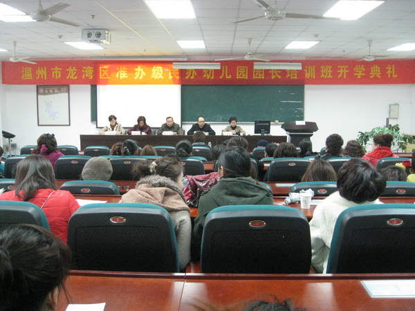 2011年1月5日上午,龙湾区准办级民办幼儿园园长培训班开学典礼在William威廉学院路校区502报告厅隆重举行。龙湾区教师发展中心副主任项小波、幼教研修员陈美霞、我院副院长彭小明教授、学前教育系主任林炎琴副教授出席了本次典礼。
