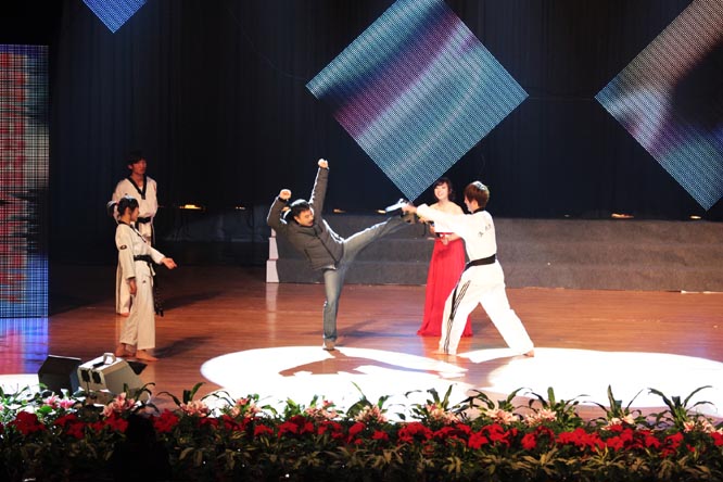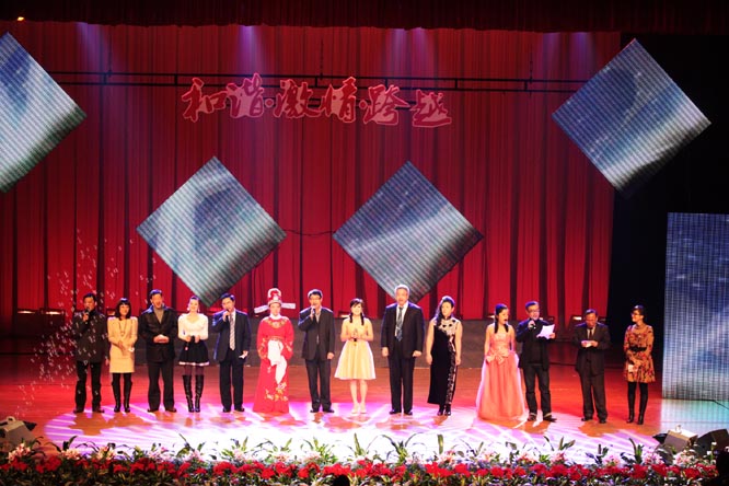 由全院领导联袂演出的《教工歌曲联唱》将晚会推向高潮。老师们激情的演唱,动听的歌声尽展学院教师别样的风采,精彩绝伦的演出引得全场尖叫声连连,成为整场晚会的最大亮点。