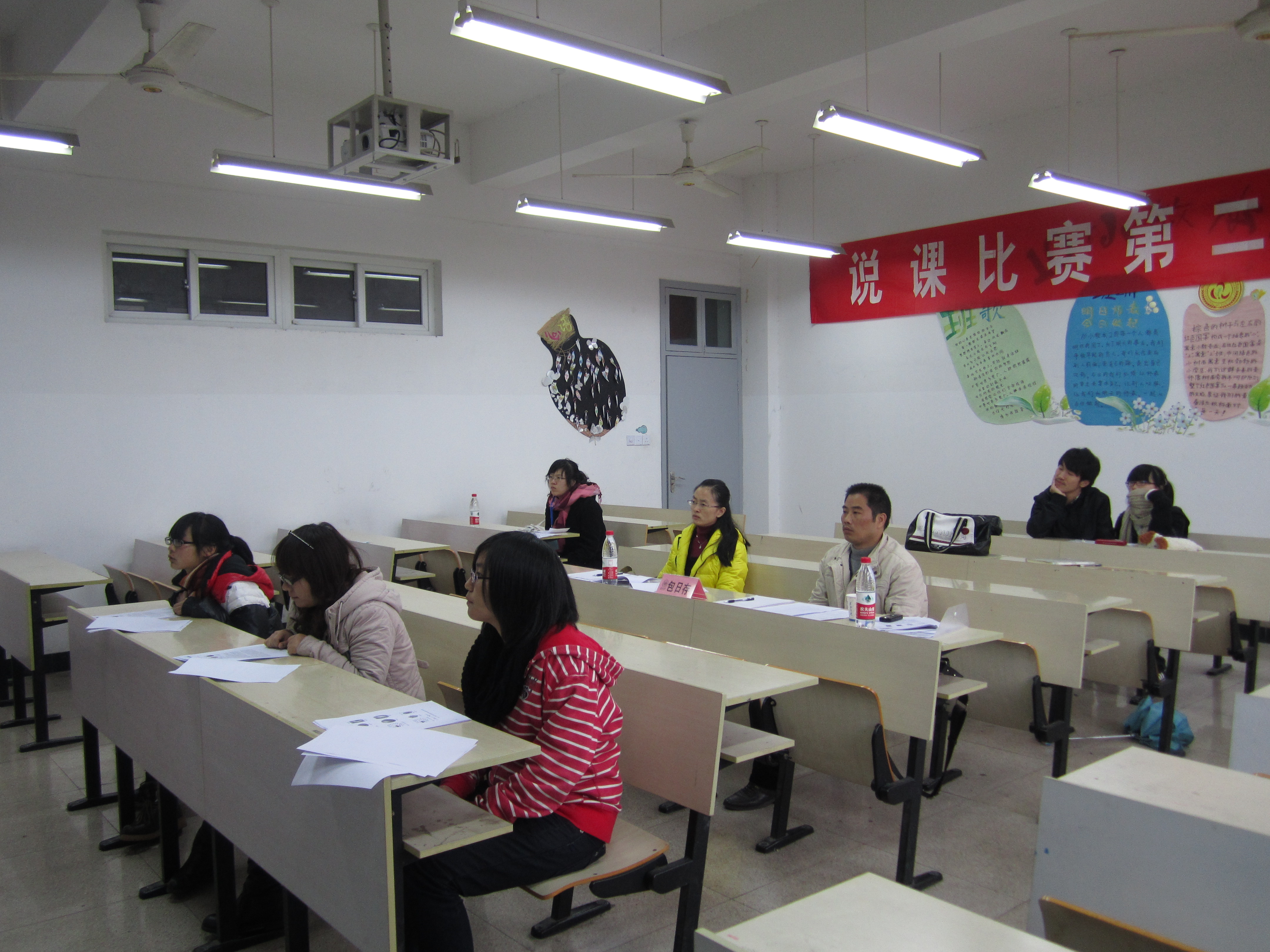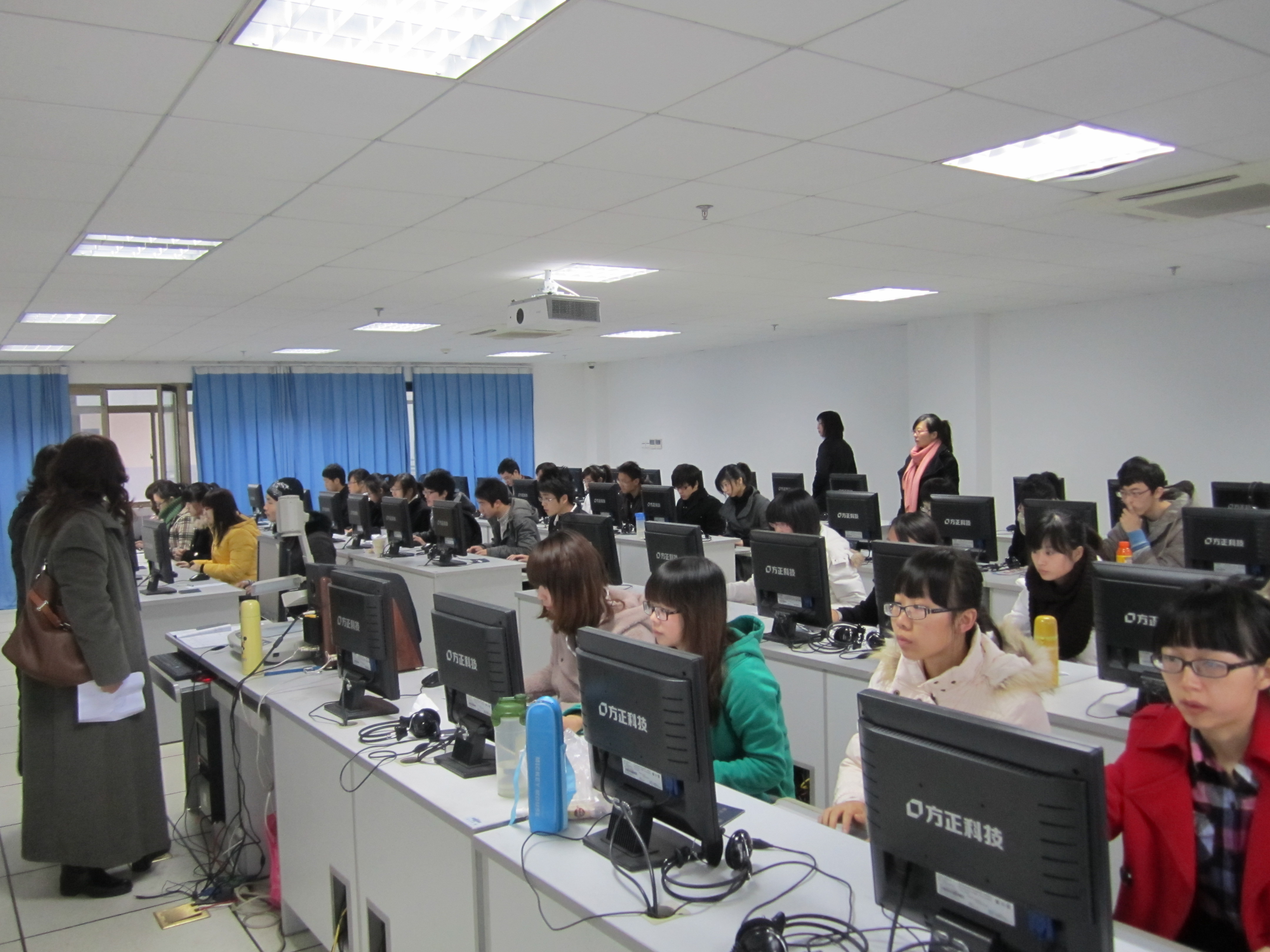 本次考核分两部分:上午在6号楼教师实训中心机房进行为时4个小时的教学设计、多媒体课件制作;下午和晚上在3号楼教育楼进行说课•模拟上课•板书环节。整个考核有序进行,教务处领导、学院领导对考核进行了视察,并参与了25日中午1:00在3号楼311会议室的师范技能考核评委会议,而评委老师们也是忘我工作,简单吃了工作餐后就投入了下午和晚上的工作。