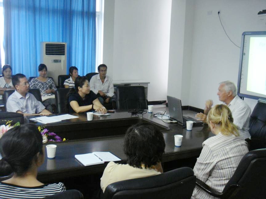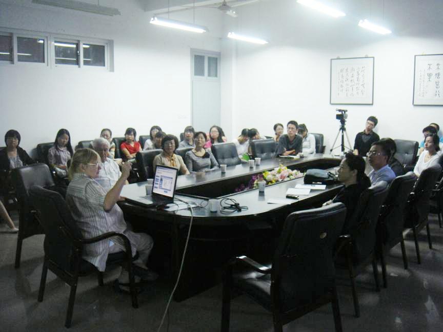 在座师生认真听取了报告,并积极主动发言,与Betty和Jef进行了深入的交流,最后大家都露出了满意的笑容,Betty教授对学生竖起了大拇指,这次学术交流活动取得了圆满成功,不仅给学生们带来了新的知识,对教师如何运用网络学习系统更好地教学有很好的启示。