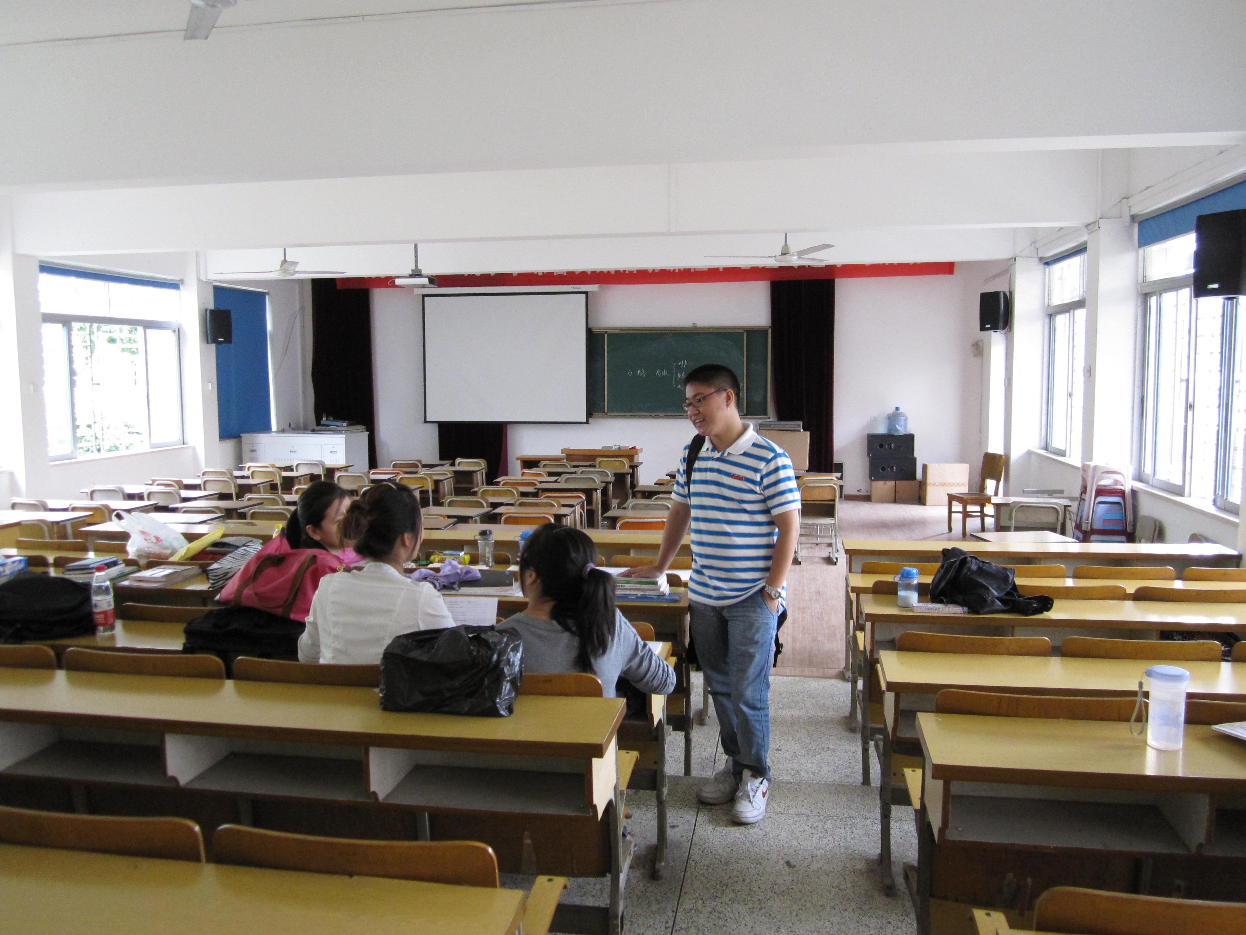 中午,两位老师又赶到安阳实验小学,同学们刚刚组织完游园活动,备课室里人虽不多,但留在备课室的同学都在积极备课。周老师了解了情况之后,鼓励在该校实习又参加师范技能竞赛的同学两手抓,挤出时间准备竞赛。同样,两位老师在和同学们会谈来到了安阳实验小学领导周副校长办公室,了解了学校对我们实习生的反馈。