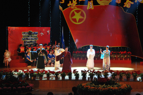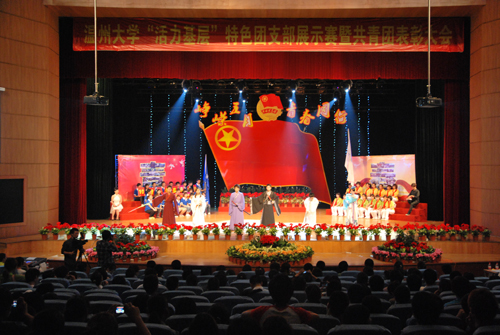 比赛中,数学与信息科学学院10数类2团支部动感的交际舞闪耀全场;城市学院奖09人本1团支部创意十足的“三国杀·职场风云”为在场的各位生动展现了职场CEO的风范;瓯江学院10数本1团支部的情景剧讲述了多年后同学们聚首时的感人画面;化工与材料工程学院10应化1团支部的化学版《青花瓷》温馨悠扬,体育学院10体教本2团支部的特色体育课程展示更是扣人心弦,彰显青春的活力与能量;而我院09小教本2班团支部的诗朗诵则深深的诉说着老师的责任、贫困儿童求学的渴望和浓厚的师生情!