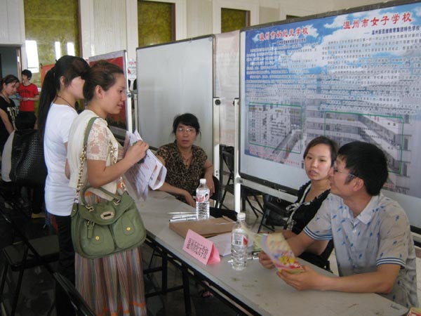 与往年热闹的招聘现场相比,今年的民办学校专场招聘初现招聘寒意。在颇有名气的温州新纪元学校的招聘摊位前,招聘人员在细心地整理着所收到的简历,负责招聘的该校教务主任戴文学表示,学校这次准备招聘17名应届毕业生,招聘专业涉及到语文、数学、英语、财会、政治、药学、体育、计算机、心理健康等多个专业,但最终只收到10来份简历,比往年大为减少。其他招聘单位的情况也是不容乐观。