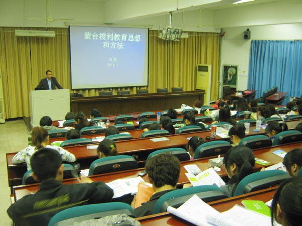 具有丰富实践经验的赵豫老师,首先以生动具体的视频资料吸引了现场学生的目光,然后向大家介绍了蒙台梭