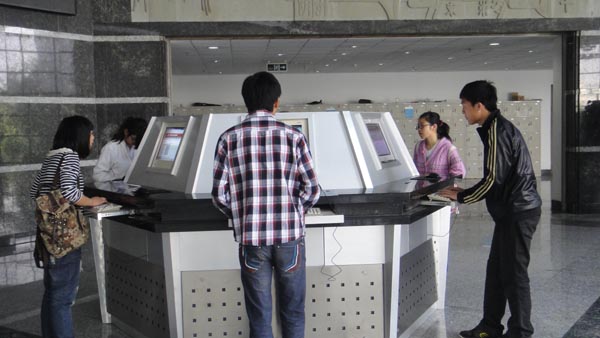 此次比赛以团体赛形式分组进行,每组两队,每队五人。参赛选手要在三个箱子里各抽取三张搜书单,选手根据每张搜书单所指定的书目,利用平常对图书馆的了解或者使用图书馆电脑检索系统,找出图书。赛前由负责人讲解比赛规则,选手们仔细聆听,大家的脸上充满自信与活力。随着裁判员一声哨响,选手们都不约而同地栽进书海中,紧张忙碌去寻找搜书单上所指定的9本书。人文学院团队在赛前任务分工明确,仅以9分38秒的速度最快找到全部书籍获得第一名,让在场的工作人员都佩服不已。