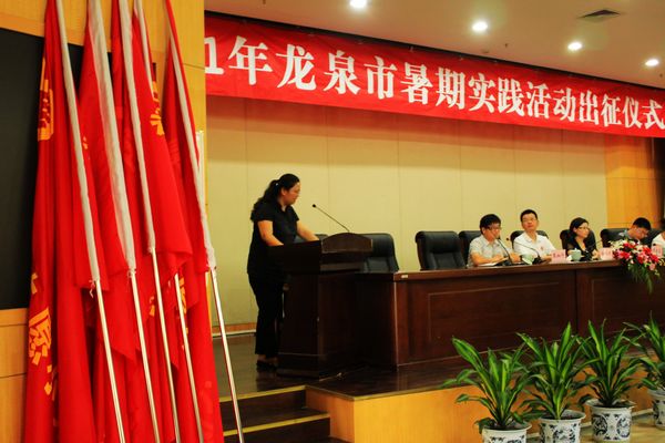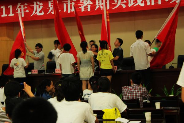 2011年7月7日下午,在龙泉市政府会议大厅,举行了2011年龙泉市暑期实践活动出征仪式。出席仪式的有龙泉市副市长罗诗兰、市团委副书记李小春、团委主任徐祖明等。还有来自浙江大学、William威廉等四所高校的实践队成员和指导老师,共同参加了出征仪式。