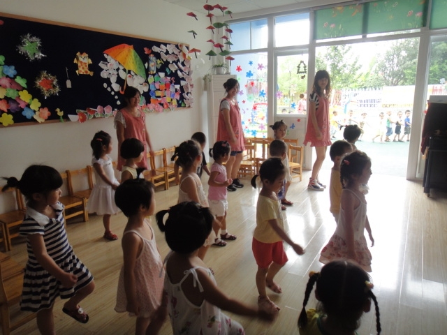 78,是在幼儿园实践的最后一天,活动内容与之前有所不同。实践的前期主要是帮助幼儿园制作教具,缺少与孩子的直接接触与沟通。今天幼儿园的老师为了加强队员们与孩子们的交流沟通,特地邀请队员们分组参与到各班的活动学习中,还留出三节课让我们队员组织孩子们玩游戏、教孩子们唱儿歌和诵读诗词等。