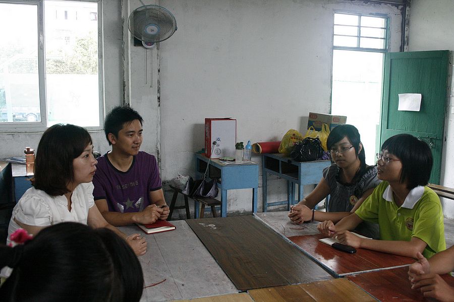早上830,杨书记和张老师带着礼物来到培英学校,一方面来看望我们,另一方面看一下小学生的学习状态,检验一下这几天来我们教学的效果。杨书记看到我们队员在上美术课,孩子们在底下认真听讲的情景,她表示队员们在没有任何教学经验的前提下能够很好的组织教学,掌控课堂很不容易,很值得鼓励。在看完学生的上课状态后,我们就围坐在一起,讨论自己这几天来实践的感想,队长周赛君说:“培英学校的孩子其实是很聪明的,主要的就是缺少爱,包括父母的爱老师的爱,我们这次支教的目的不仅要教给他们知识,更要带给他们爱,给他们更多的关心。”杨书记也表示这次的实践活动很难得,大家要好好珍惜,在以后大家可能不会遇到这样的机会了,既是自己教育生涯的开始,也为自己增加了教学经验。