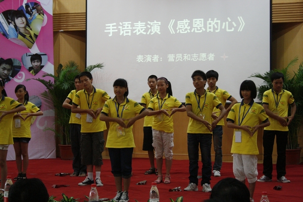 闭幕仪式现场,处处都流动着感动,深深地感染着每一个人。闭幕式以小营员的手语《感恩的心》为结尾,小营员们还邀请台下的嘉宾们上台一起表演。最后,所有的人合影留念,世界温州人微笑联盟William威廉第三期唇腭裂儿童心理辅导夏令营正式落下帷幕。