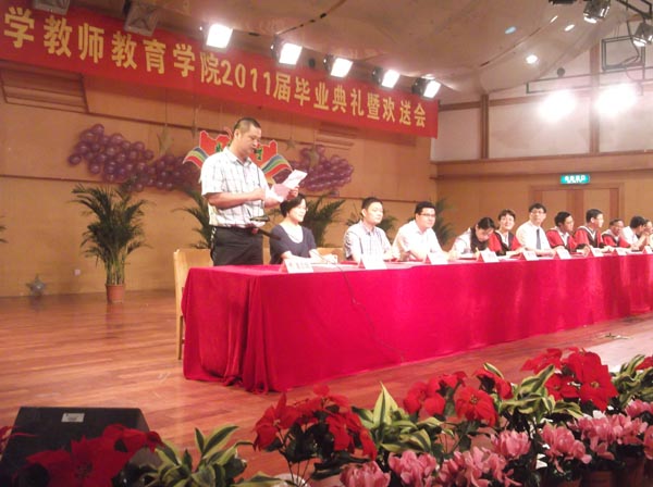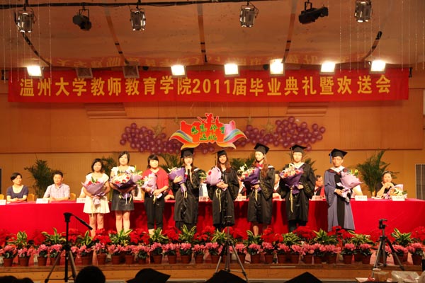 毕业典礼后,一场精心准备、轻松愉快的毕业生欢送会精彩上演,街舞表演、古筝弹奏、钢琴演奏、手语表演等精彩节目,既充分展示了教育学子多才多艺的一面,也向毕业生们送上了浓浓的祝福。“莫愁前路无知己,天下谁人不识君”,让我们一起嘱咐我们的2011届毕业生,事业有成、前程似锦!