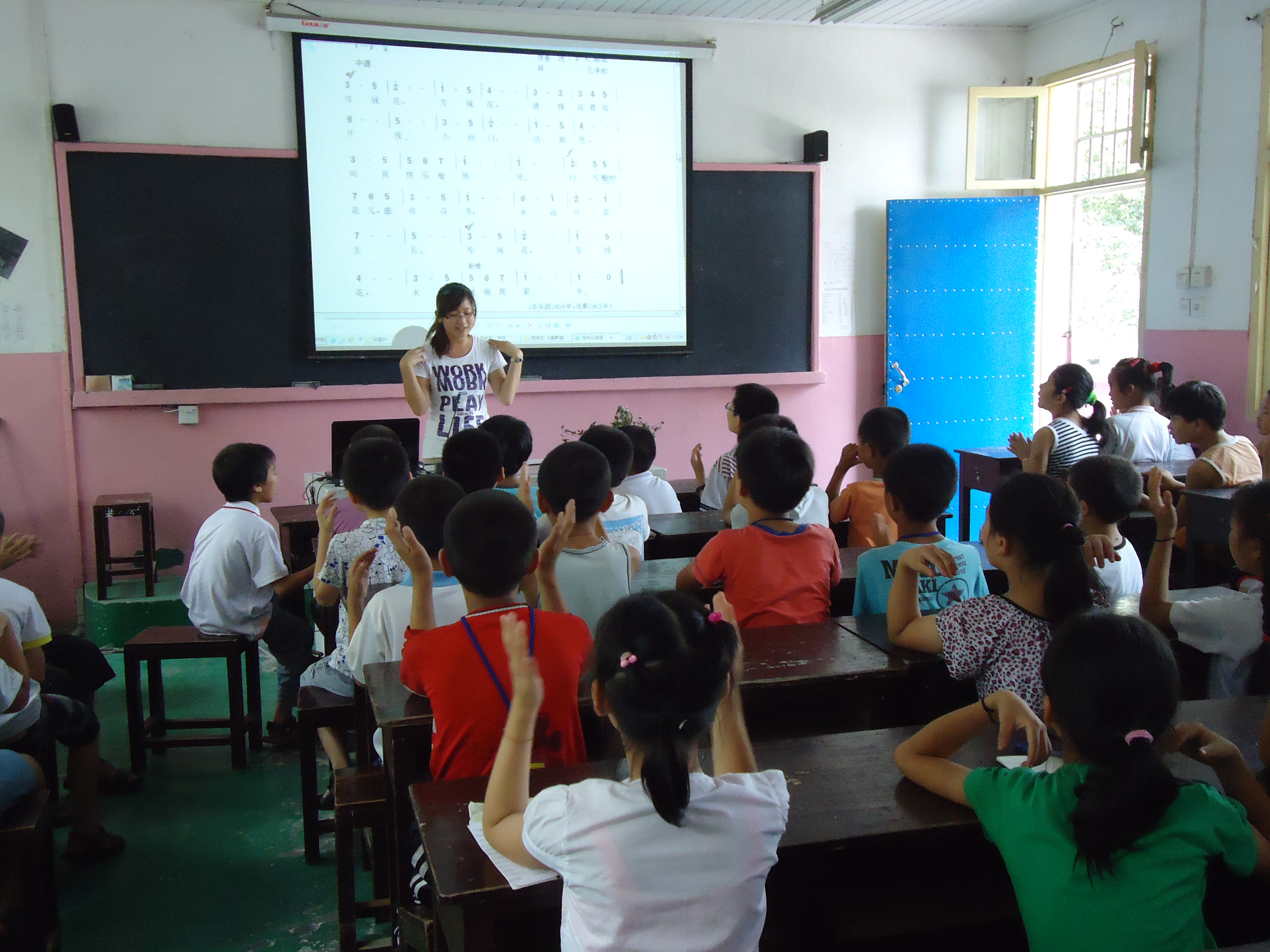 所以,我们的老师为他们带去了音乐课,教他们唱《雪绒花》。那些天真的孩子,就像雪绒花中唱的一般,“小而白,纯又美”,他们的眼中不含杂质,他们的兴奋不加掩饰,不知道他们是不是“总很高兴遇见我们”,但我们每一个队员都为和他们的相遇而幸福着,是他们教会了我们珍惜,是他们清澈的眼睛抹去了我们心中的尘埃,所谓教学相长,就是如此吧。他们沉浸在歌里,我们沉醉在他们的笑里。我们默默祝福着他们像“雪似的花朵深情开放”,是的,他们一定会绚烂地绽放的,我们坚信。