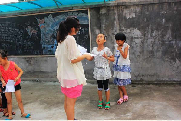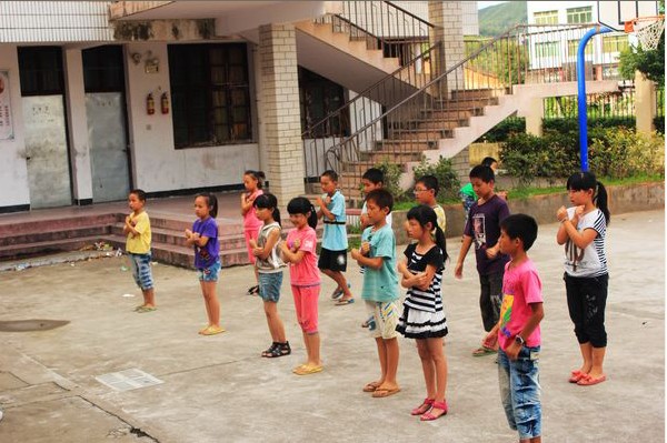 7月12日下午,知心畲乡实践队为最后的晚会节目进行排练。