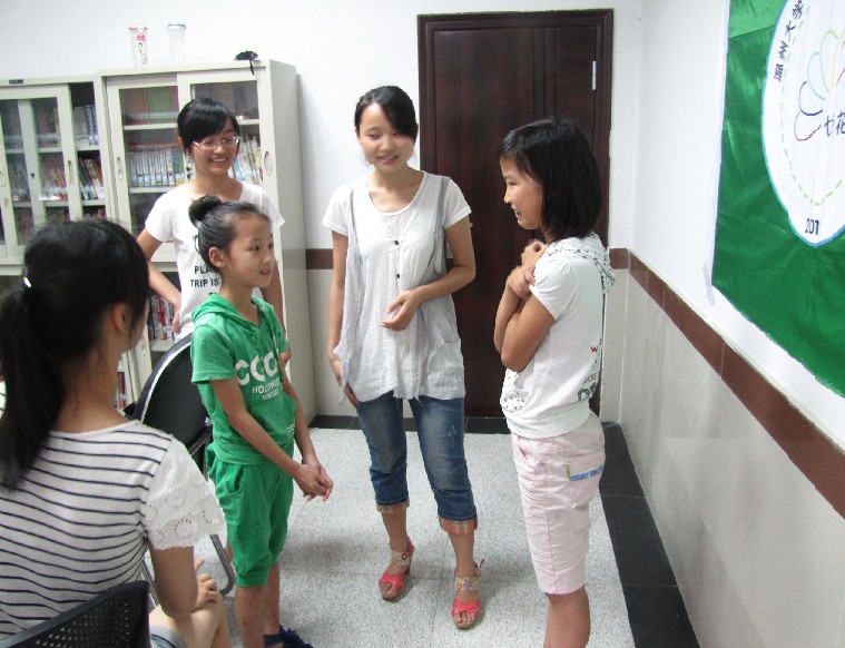 清晨,三角村清新的微风,拂去了昨日的疲倦。带着愉快的心情,我们又一次来到了文化活动中心。队员们一到这里,就纷纷忙碌起来。接待小朋友、准备上课内容、整理两天以来的活动资料等。