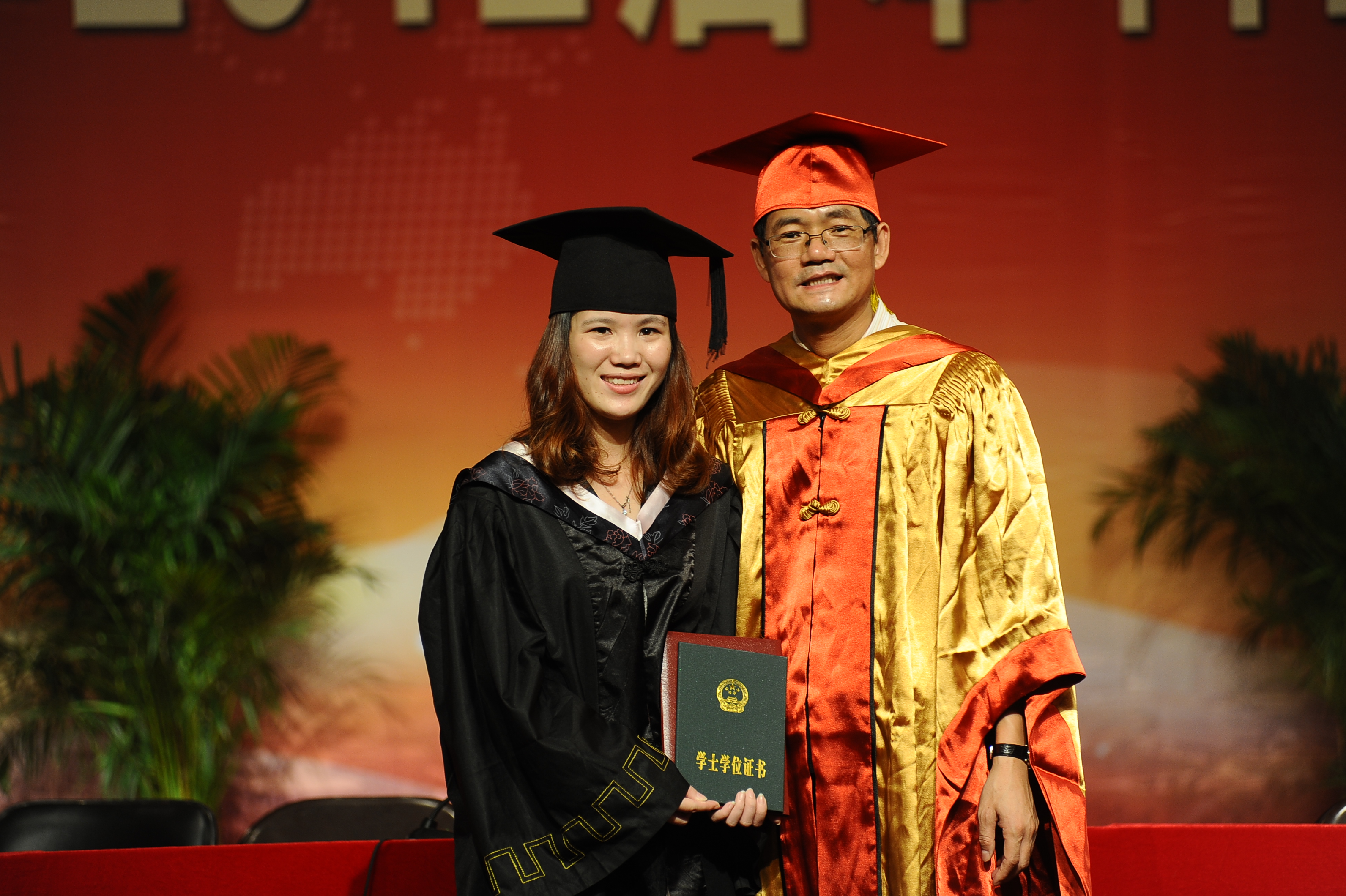 在深情的《启程》、《放心去飞》乐曲声中,毕业典礼迎来高潮,蔡袁强校长为我院341名毕业生颁发毕业证书和学位证书。在这最美好的时刻蔡校长身着校长服,同学们身穿学士服,整个场面庄重神圣。蔡校长不辞辛劳为我院每一位本科生拨穗、颁发学位证书和毕业证书,为每一位专科生颁发毕业证书,并合影留念,同时祝贺他们学成毕业,同学们激动、幸福、喜悦的心情无法言表。整个证书授予仪式持续了一个半小时,期间蔡校长没有休息过片刻,在场的毕业生被深深感动,最后他们发自内心的喊出:蔡校长,您辛苦了!蔡校长,我们爱您!