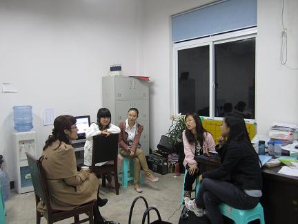 随后,孙院长来到锦湖实验小学。在林校长办公室,孙院长向林校长了解了校方对我们实习同学的反馈,在得知同学们无论在生活和教学方面都无可挑剔后,孙院长放心了,尤其在林校长告知有一小部分同学教学技能比锦湖实验小学新招进来的教师还强的时候,孙院长赶到很欣慰。接下来孙院长与部分近乎实验小学的同学座谈,询问了大家生活、上课、论文准备情况,并表示有什么困难可以立即向她提出来。虽然同学们都表示很好,请院长放心,孙院长还是叮咛大家注意天气变化的保暖工作,在学校和出校门的安全工作。夜幕不知不觉中降临了,5:20,孙院长一行带着宽心和满意离开了锦湖实验小学。