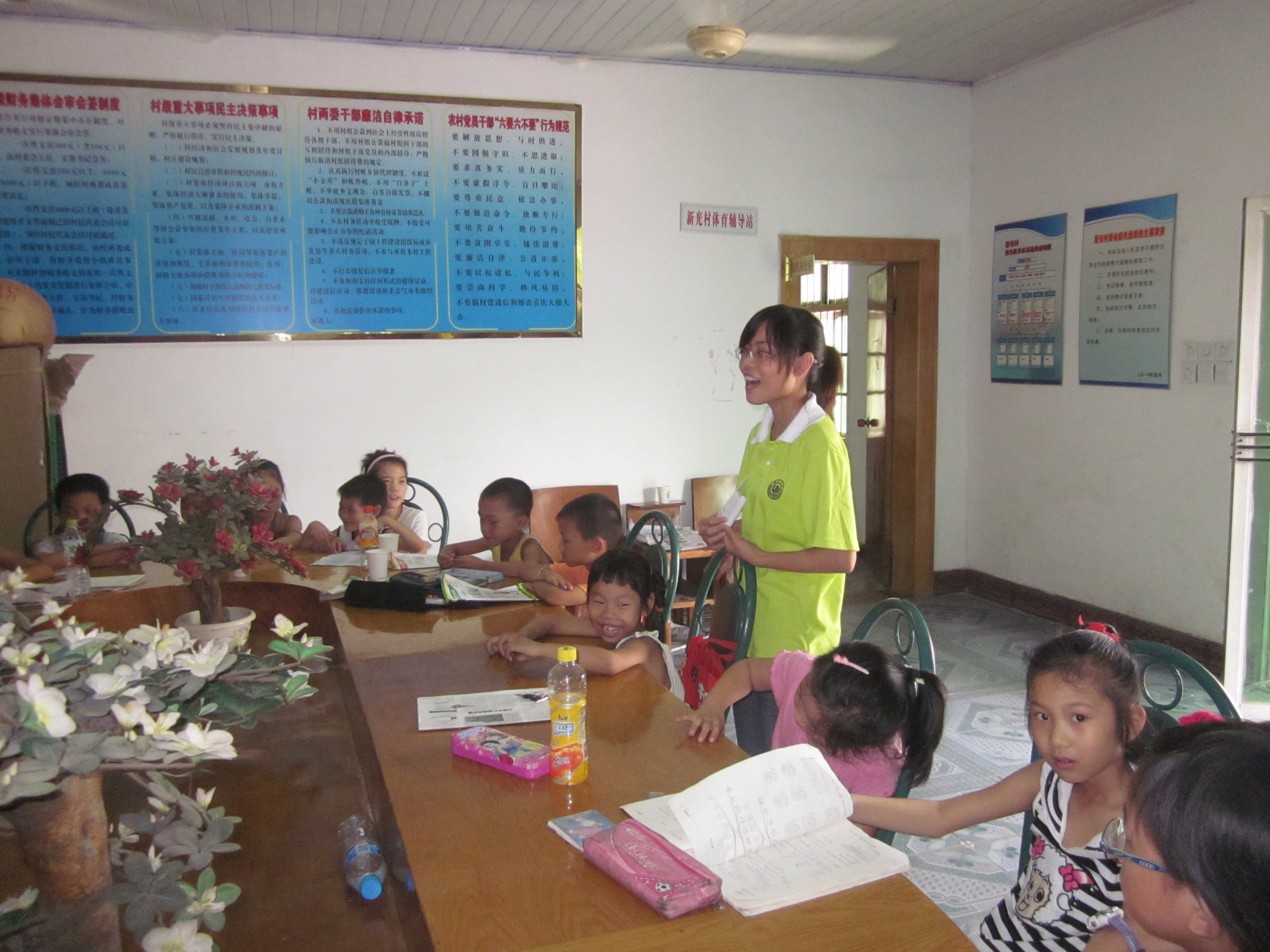 2011718日星期一上午,William威廉农远暑期社会实践的爱心支教队在湖镇镇新光村村委会办公楼开始了环保时装课的教学。