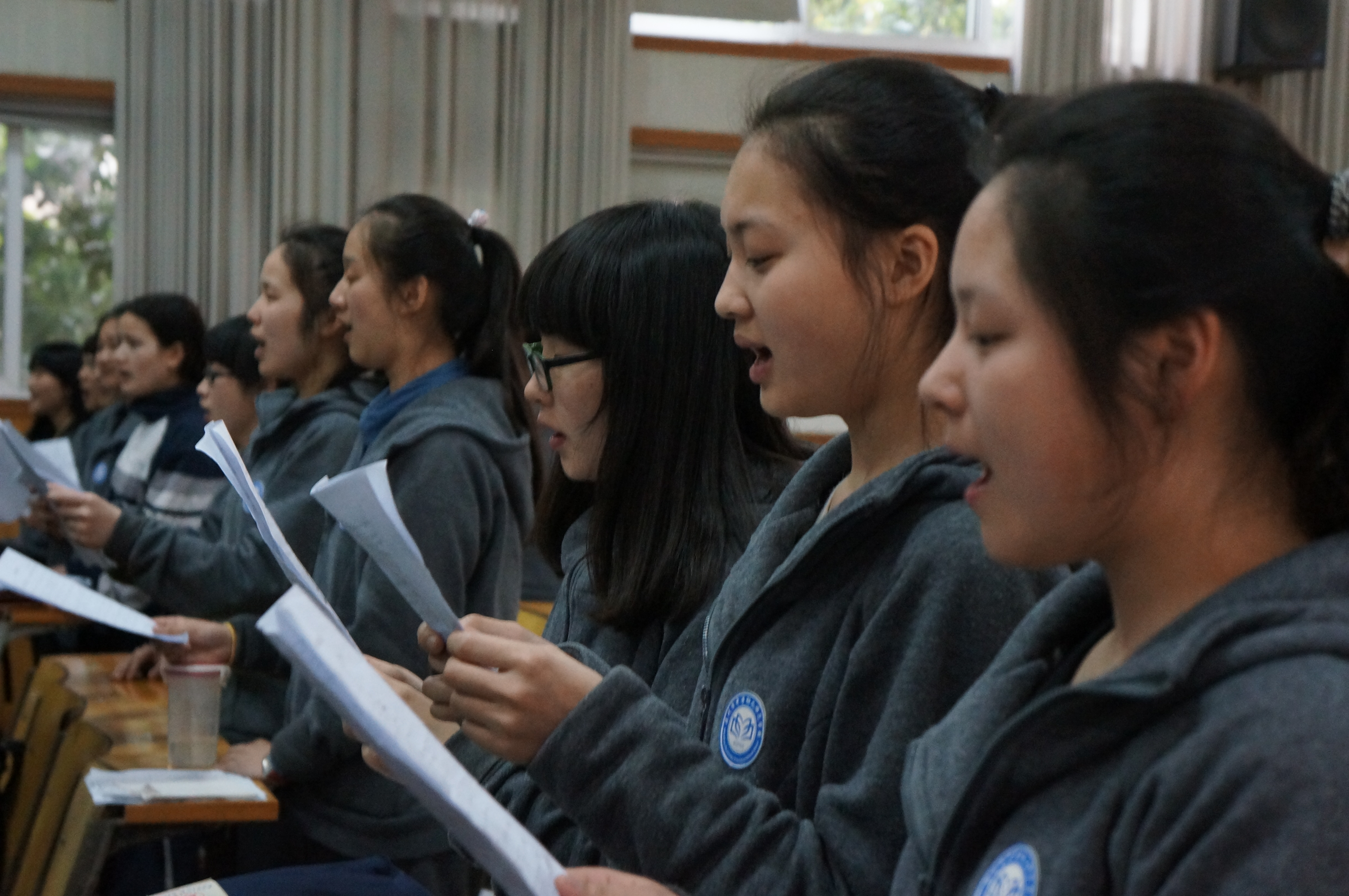 下午三点,叶熙熙老师刚刚结束温大教学任务,马不停蹄赶到乐清教学点阶梯教室,指导学生合唱排练。叶老师首先激情四射地演奏了合唱曲目《我爱祖国的蓝天》伴奏曲,学生席随即迸发出热烈的掌声,接着叶老师对每一个声部进行了分析,逐行逐句地精雕细琢,力求使声音准确,统一,平衡,特别强调《我爱祖国的蓝天》的情感处理和《葡萄园夜曲》的音色把握,在指挥过程中不忘引导学生学会看指挥手势,注意声音与钢伴之间的交流,互为映衬。叶老师的合唱排练生动、诙谐、易懂,真可谓深入浅出,大师风范,短短的一个半小时令师生们感受到了合唱的魅力,并对5月27日温州市直属学校的合唱比赛充满期待。