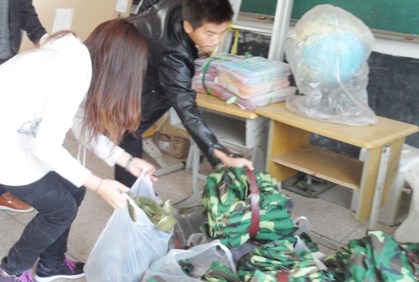 10月26日,我院教育协会宋丹丹、杜月美、高叶兵等同学前往永嘉县鹤盛中心小学,代表教育协会将一批军训服装送给该校小学生的家长。这批军训服装是我院教育协会与浙师大一起合作募捐得来的。鹤盛中心小学的校长、老师都对我院大学生不辞辛劳的工作表示感谢,并介绍了学校目前的情况以及困难,例如因为资金不足,就快到冬天了,可是现在孩子们都还没有热开水可以用,且没有足够的课外书供他们阅读。教育协会的大学生们希望社会各界能对山区学龄儿童多些多些关注,多帮帮他们,多照顾他们。